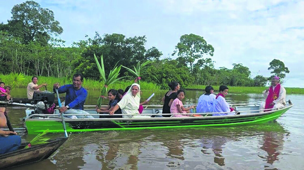 Na Prelazia de Tefé, no estado do Amazonas, o bispo Dom José Altevir da Silva, presidiu a missa do Domingo de Ramos na Capela Nossa Senhora Aparecida, na Vila de Tamaniquá, no município de Juruá, em uma comunidade ribeirinha que foi recentemente atingida pelas cheias de um rio. “Não tendo terra para fazer a procissão, sugeri fazermos de canoa, a remo”, contou o Prelado ao Vatican News.