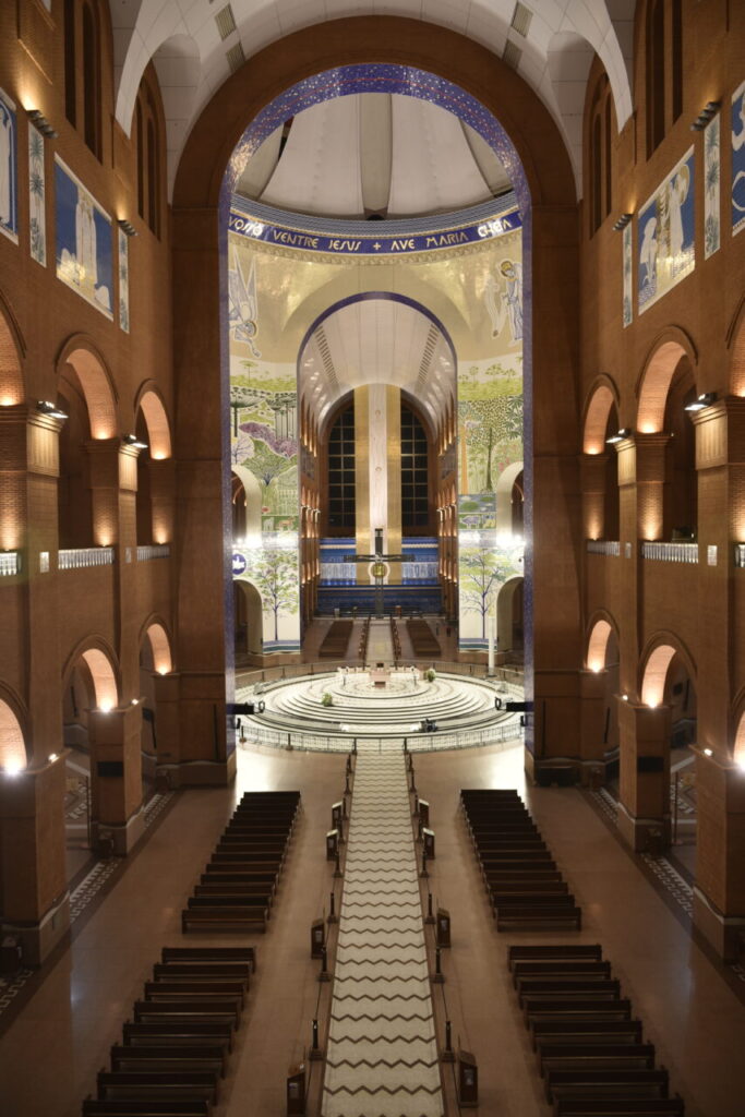 O projeto arquitetônico e artístico do Portal da Virgem, da Basílica de Aparecida, transcende a mera dimensão estética para se constituir em autêntica catequese visual. O imponente Totem de Ouro de 45 metros que remete à Escada de Jacó; os arcanjos Gabriel, Miguel e Rafael que sobrevoam a Imagem; a simbologia da pesca milagrosa; as 12 mulheres do Antigo Testamento como prefiguração de Maria; a rica iconografia das rampas ornamentadas com a Ladainha Lauretana, flores, pássaros da fauna brasileira, elementos do Cântico dos Cânticos: cada detalhe artístico – desde a cor dourada que simboliza a presença divina até a muiraquitã em estilo marajoara como símbolo de ressurreição – integra-se em uma narrativa teológica coerente, que apresenta Aparecida como lugar teofânico, onde céu e terra se comunicam, e como oásis espiritual que acolhe milhões de peregrinos anualmente