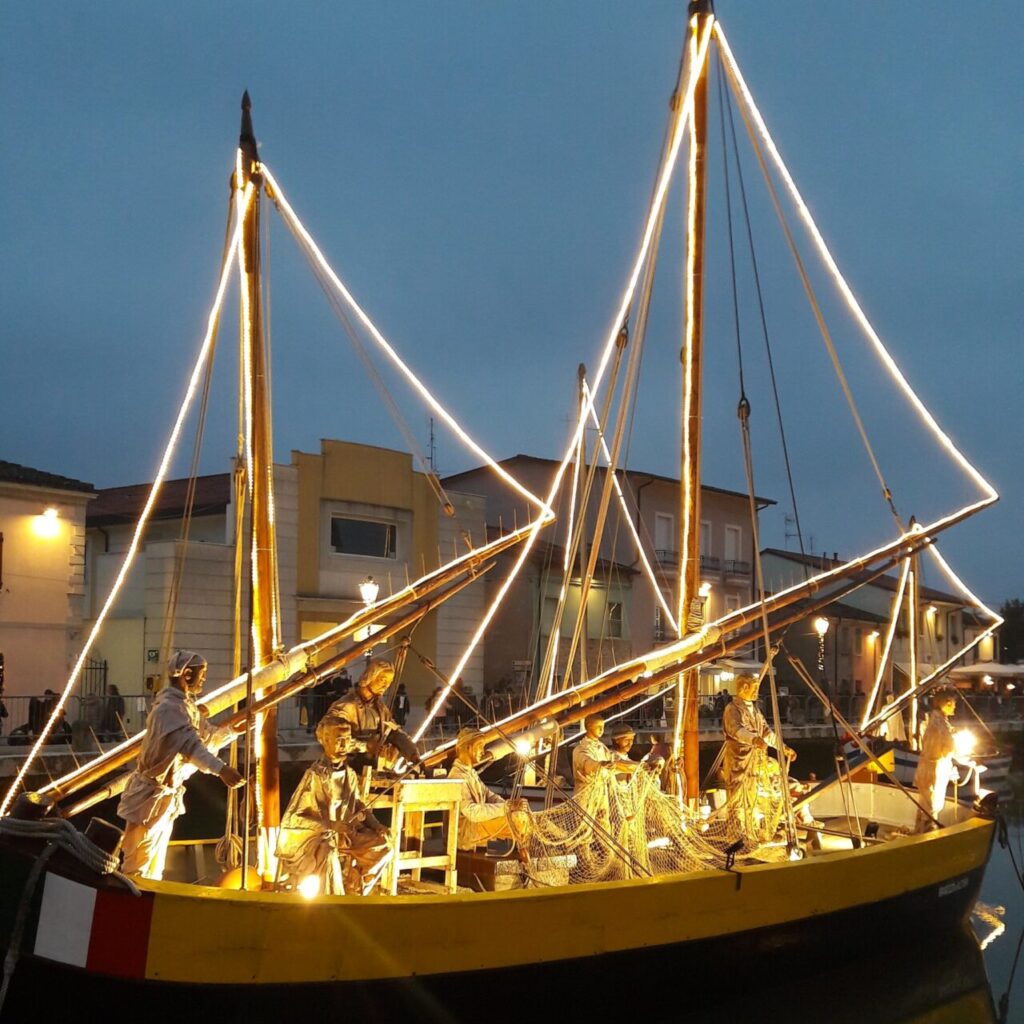 Desde 1986, na cidade costeira de Cesenatico, na Emilia-Romagna, cujo porto foi projetado por Leonardo da Vinci, é montado um presépio único no mundo: não há grutas, sinos, montanhas com neve ou ovelhas que servem como cenário para a Natividade, mas antigas e coloridas embarcações do Mar Adriático que, sobre as águas, abrigam a Sagrada Família, os Reis Magos e todos os outros personagens do presépio, em companhia de golfinhos esculpidos que anunciam o nascimento do Menino Jesus, e podem ser admiradas do cais.