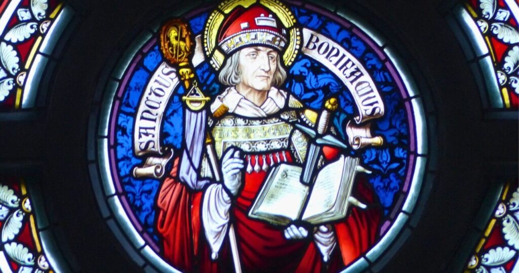 Vinfrido (Inglaterra, 673 – Dokkum, Holanda, 5 de junho de 754), chamado Bonifácio pelo Papa Gregório II, monge em Exeter, se tornou em seguida, a partir de 719, o apóstolo e o evangelizador das populações germânicas, às quais deu as primeiras noções de liturgia adaptada às exigências das comunidades locais. Promoveu a reforma da Igreja na França e colaborou para o desenvolvimento religioso de sua pátria de origem, mantendo constante contato com os pontífices romanos. Foi martirizado enguanto evangelizava os frisões. Seu corpo é conservado em Fulda.