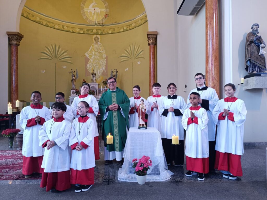 No domingo, 6, na Paróquia São Luís Gonzaga, Decanato Santa Isabel e São Zacarias, houve a investidura de 11 novos servidores do altar, durante a missa das 11h, presidida pelo Cônego José Renato Ferreira, Pároco. Após um período de formação e preparação, esses jovens assumiram publicamente o compromisso de servir com zelo, respeito e alegria nas celebrações litúrgicas da comunidade paroquial. (por Letícia Amorim)