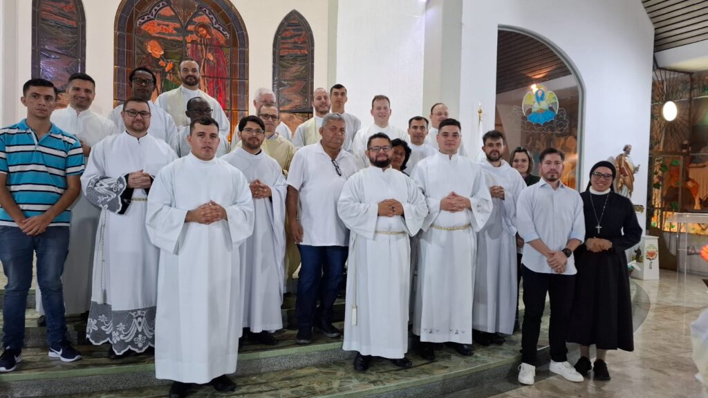 Na noite do domingo, 9, na Paróquia São Francisco de Assis, no Jaguaré, Decanato São Bartolomeu, Dom Edilson de Souza Silva, Bispo Auxiliar da Arquidiocese na Região Lapa, presidiu a missa durante a qual apresentou o Diácono Glauco Gardeano (à direita do Bispo) como Assistente Pastoral da Paróquia. Concelebraram os Padres Edilberto Alves da Costa, Pároco; e Felipe de Morais, da Diocese de Limeira (SP), com a assistência dos Diáconos Ronaldo Conti Della Nina e Wagner Gomes Coelho.