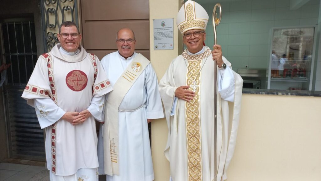 Dom Carlos Silva também ressaltou o exemplo de Santa Dulce: “A cozinha comunitária é um belo sinal de amor que se faz concreto. Santa Dulce dos Pobres nos ensina com sua vida que o amor supera todos os obstáculos, que o amor tudo vence. Quem via isso aqui, que não era nada… olha como estamos hoje! Isso aqui está parecendo uma catedral”, brincou. “O Espírito Santo está passando como o rio do profeta Ezequiel, enchendo de vida esta comunidade”, completou.