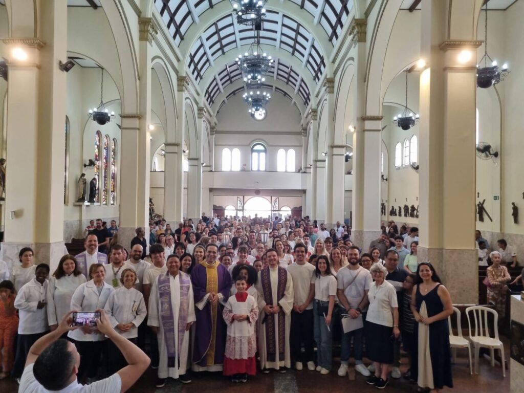 No domingo, 7, em missa na Paróquia Nossa Senhora Aparecida de Moema, Decanato São Mateus, presidida pelo Padre Samuel Alves Cruz, SDS, Pároco, 65 crianças receberam a primeira Eucaristia. (por Pascom paroquial)
