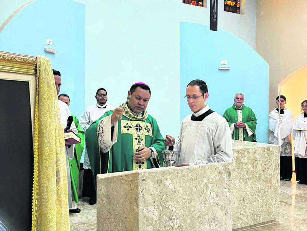 Em missa na Comunidade Maria de Nazaré, pertencente à Paróquia Nossa Senhora da Esperança, Decanato São Timóteo, na quinta-feira, 6, Dom Cícero Alves de França abençoou o novo altar, o ambão, a cadeira presidencial e a cruz do templo, colocada para veneração dos fiéis. A missa foi concelebrada pelos Padres Francisco de Assis Miguel, C.Ss.R., Pároco; e Manuel Novais Dias, C.Ss.R., Vigário Paroquial. (por Pascom paroquial)