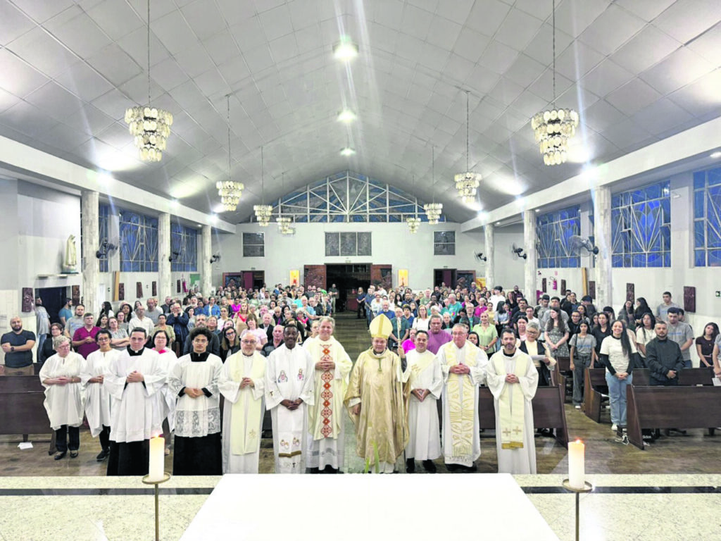 No sábado, 8, centenas de missionários e coordenadores da Pastoral da Mãe Rainha e Vencedora Três Vezes Admirável de Schoenstatt na Região Belém, se reuniram na Paróquia Coração Eucarístico de Jesus e Santa Marina, Decanato São Lucas, para a celebração em comemoração dos 75 anos da Campanha da Mãe Peregrina de Schoenstatt no Brasil. A missa foi presidida por Dom Cícero Alves de França e concelebrada pelos Padres Lauro Wisnieski, Assessor Eclesiástico para a Campanha da Mãe Peregrina na Região Belém; Odair Calezulato, Pároco, e Cláudio de Oliveira, Pároco da Paróquia Nossa Senhora Aparecida e São Luciano. Na homilia, Dom Cícero destacou o trabalho silencioso realizado pelos missionários que visitam as famílias com a capela da Mãe Peregrina. (por Maria de Cássia Batista)