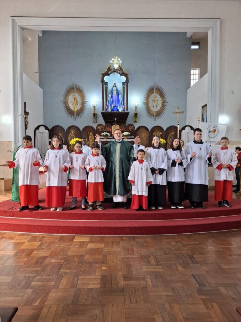 No domingo, 3, nove servidores do altar (coroinhas e acólitos) foram investidos na Paróquia Nossa Senhora das Graças, Decanato São Mateus, em missa presidida pelo Padre Benedito Vicente de Abreu, Pároco. (por Pascom paroquial)