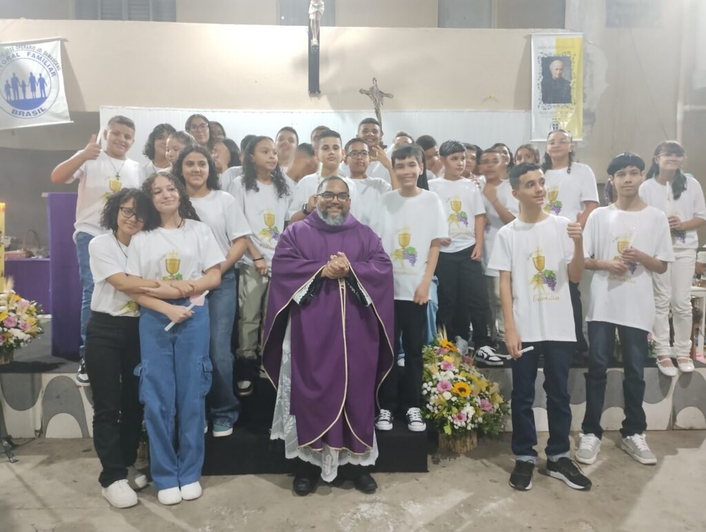 No sábado, 20 de dezembro, 33 jovens da Paróquia São José Operário, Decanato São Filipe, receberam pela primeira vez o sacramento da Eucaristia, em missa presidida pelo Padre Gilson Feliciano Ferreira, SV, Pároco. “Vocês se tornaram sacrários vivos, morada do Senhor”, disse o Sacerdote. (por Keli Silva)