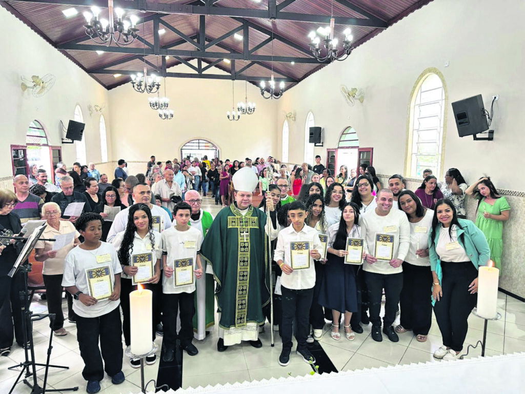 Na tarde do sábado, 9, Dom Cícero Alves de França presidiu missa na Área Pastoral Nossa Senhora do Carmo, durante a qual conferiu o sacramento da Crisma a 32 jovens e adultos. Concelebrou o Padre José Osterno, Pároco. (por Kaique Mazaia)