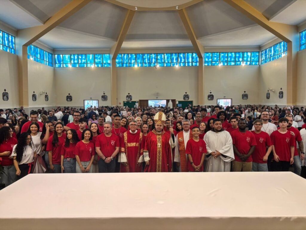 Dom Cícero Alves de França presidiu missa na Paróquia São Miguel Arcanjo, no Jardim Conquista, Decanato Sant’Ana e São Joaquim, e conferiu o sacramento da Confirmação a 30 jovens e adultos na noite do domingo, 16. Concelebraram os Padres Ailton Damasceno, MSC, Pároco, e Elinaldo Assunção, MSC, Vigário Paroquial, com a assistência do Diácono Marcel Martins. (por Kaique Mazaia)