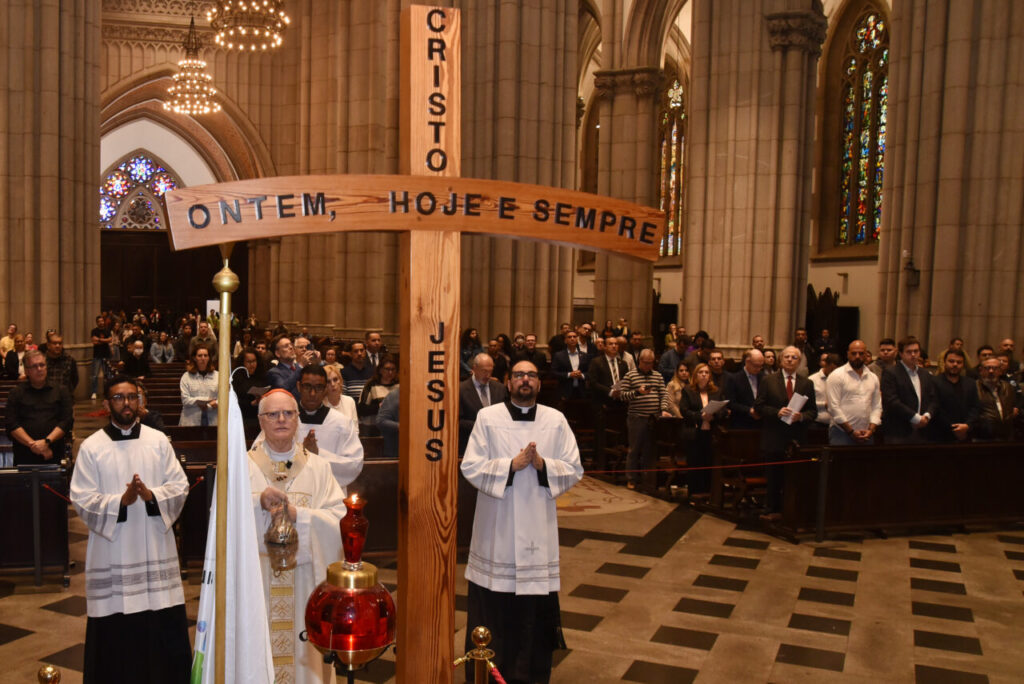 Em frente ao presbitério, eles ouviram a explicação do significado das indulgências, acompanharam a leitura da carta de São Paulo aos Romanos (Rm 5,5-11) e contemplaram a cruz jubilar. Dom Odilo enfatizou que este é um ano de júbilo porque “a Igreja oferece a oportunidade de renovação da vida cristã, para que cada pessoa possa receber o perdão dos pecados e ganhar as indulgências”.