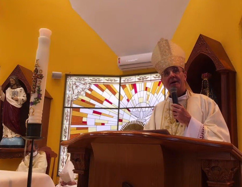 Na Vigília Pascal, Padre Juliano Maroso Gonçalves, Pároco, conduziu o Círio Pascal na Paróquia Nossa Senhora de Lourdes, na Região Belém.
