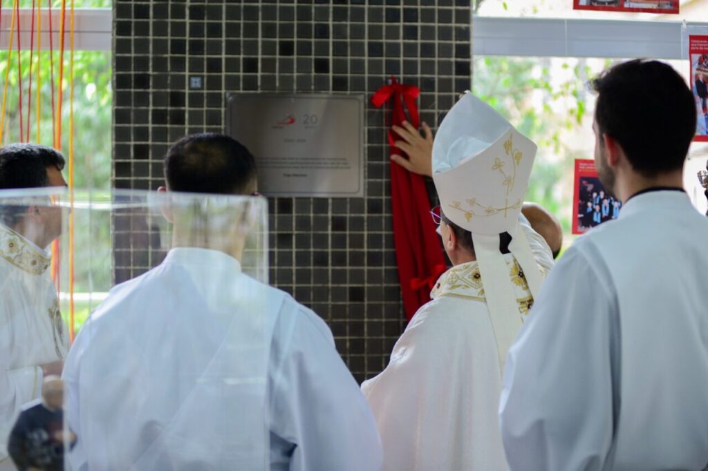 Após a missa, colaboradores que contribuíram para o desenvolvimento da faculdade foram homenageados com placas de agradecimento. O gesto expressou o reconhecimento por duas décadas dedicadas à missão paulina de formar comunicadores capazes de transformar a sociedade, inspirados pela fé e pelos valores do Evangelho.