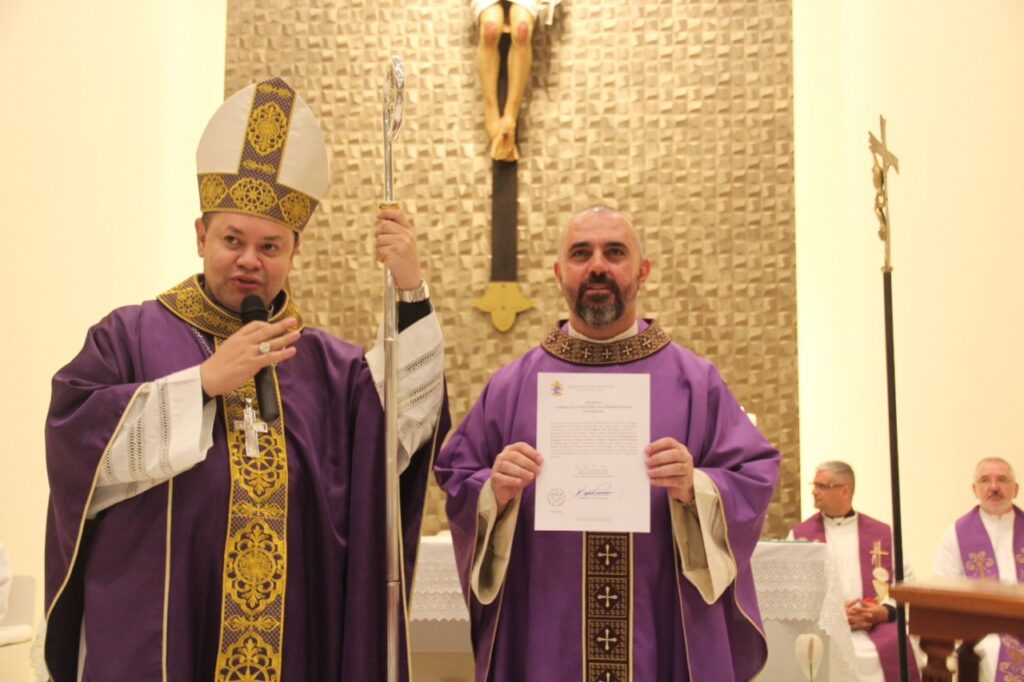 Na quinta-feira, 20, Dom Cícero Alves de França presidiu missa na Paróquia Sagrada Face, Decanato Sant’Ana e São Joaquim, durante a qual deu posse ao Padre Everton Luis Macedo, MPS, como Pároco. Concelebraram o Monsenhor Orlando Aparecido de Souza Pannaci, MPS, fundador da Congregação dos Missionários da Providência Santíssima, e os Padres Vidal Valentín Cantero Zapattini, CSS, Decano; William Oliveira Rosa, MPS, Vigário Paroquial; Paulo Eduardo Santos, MPS, Pároco da Paróquia Nossa Senhora Aparecida, na Vila Nova York; e José Mário Ribeiro, Pároco da Paróquia Nossa Senhora da Conceição. (por Fernando Arthur)
