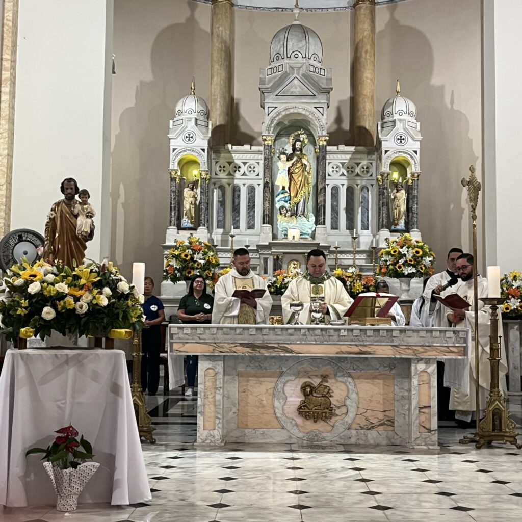 Centenas de fiéis se reuniram na Paróquia São José do Belém, Decanato Santa Maria e São José, para celebrar o padroeiro no dia 19. Uma das oito missas do dia foi presidida por Dom Cícero Alves de França e concelebrada pelos Padres Marcelo Maróstica Quadro, Pároco, e Yago Barbosa Ferreira, Vigário Paroquial da Paróquia São Patrício, na Região Lapa. (por Fernando Arthur)