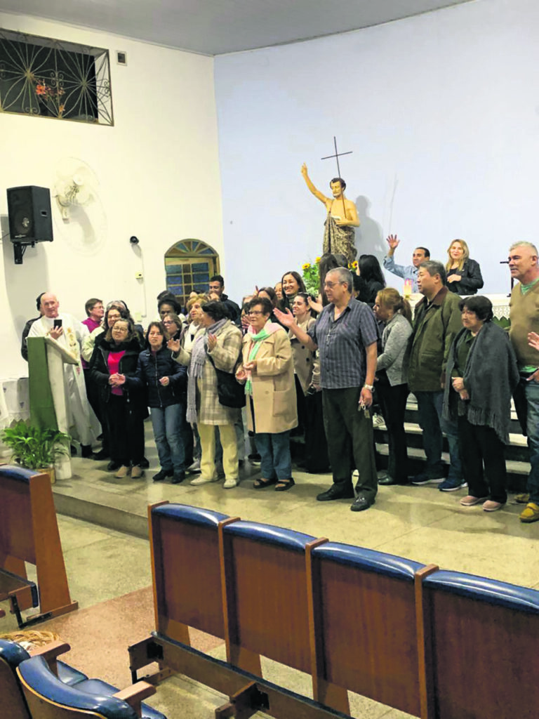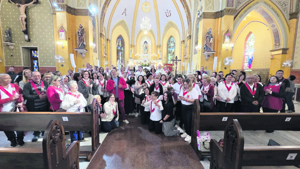 Membros do Apostolado da Oração dos três decanatos da Região Lapa peregrinaram à igreja matriz da Paróquia Nossa Senhora da Lapa, por ocasião do Jubileu 2025, na manhã do sábado, 28 de junho. A atividade, conduzida pelo Padre Eduardo Augusto de Andrade, Assistente Eclesiástico do Apostolado da Oração da Região Lapa, iniciou-se na parte externa da igreja e foi concluída com a missa por ele presidida, com a assistência do Diácono Marcos Adriano de Souza. (por Osvaldo Reis)