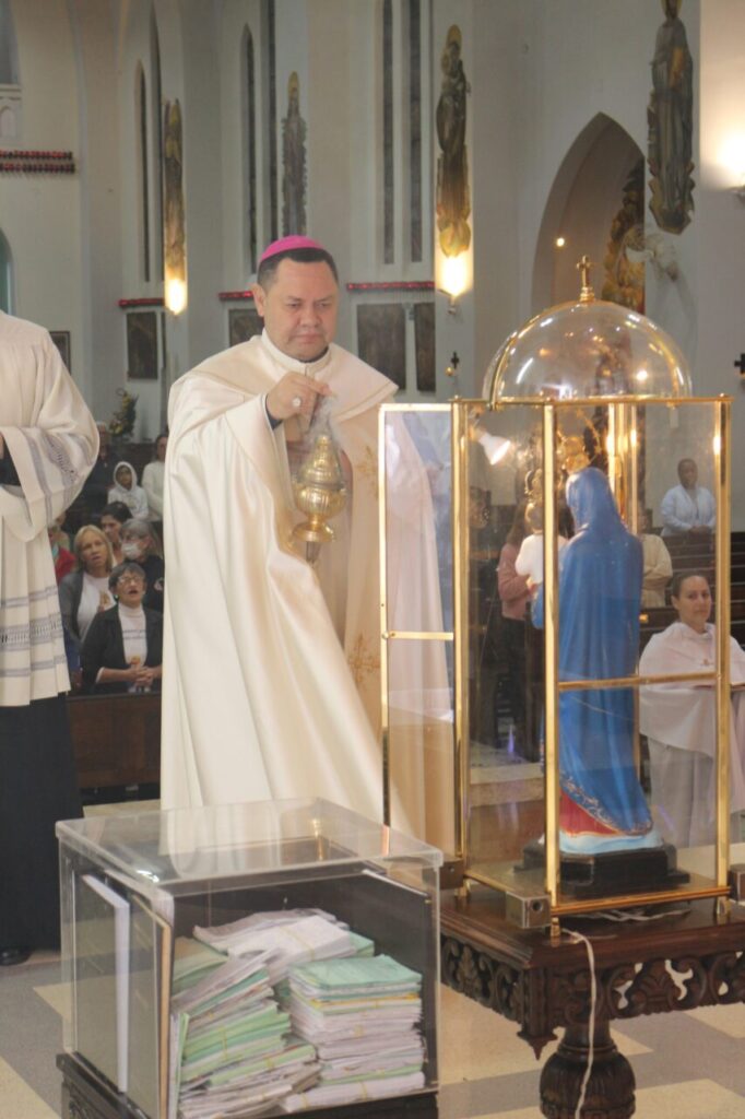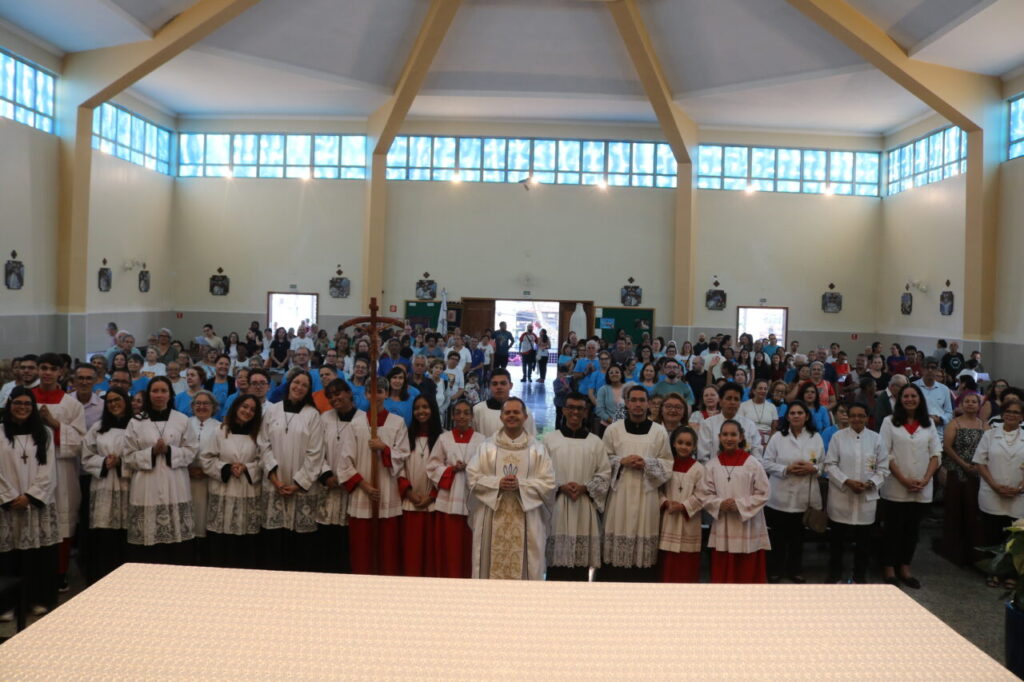 Na noite da sexta-feira, 16, Dom Cícero Alves de França deu início à novena da padroeira da Paróquia Nossa Senhora do Sagrado Coração, Decanato São Lucas. Com o tema “Maria: Mãe da Esperança”, o primeiro dia foi dedicado à oração pelo Papa Leão XIV e seu ministério petrino. A missa foi concelebrada pelos Padres Girley dos Santos Reis, MSC, Pároco, e Lucemir Alves Ribeiro, MSC, Reitor do Seminário da Congregação dos Missionários do Sagrado Coração. (por Pascom paroquial)