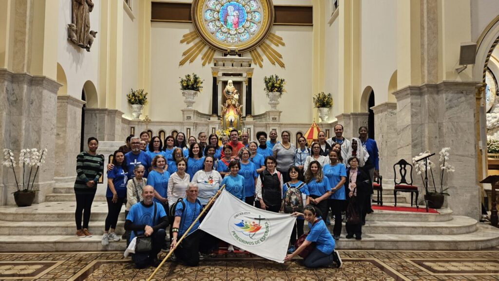 Os fiéis da Paróquia Nossa Senhora da Saúde realizaram no sábado, 18, peregrinação a duas igrejas jubilares, ambas na Região Santana: ao Santuário Nossa Senhora da Salette e à Basílica Menor de Sant’Ana. No primeiro templo, o grupo foi acolhido pelo Padre Claudir Costenaro, MS, Vigário Paroquial. Além do rito jubilar, os peregrinos conheceram o Memorial Salette, que possui artefatos históricos da fundação da comunidade. Na sequência, o grupo caminhou até a Basílica Menor, sendo acolhido pelo Padre José Roberto Abreu de Mattos, Pároco e Reitor, e participou da celebração eucarística por ele presidida, com assistência do Diácono Seminarista Dêvisson Luan Oliveira Dias. (Com informações de José Eduardo Rodrigues)