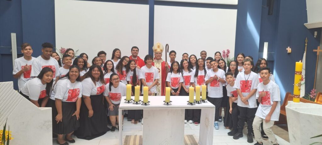 Em missa no domingo, 31 de agosto, na Paróquia Santa Teresinha do Menino Jesus, Decanato Santa Isabel e São Zacarias, presidida por Dom Carlos Silva, OFMCap., 32 jovens receberam o sacramento da Confirmação. Concelebrou o Padre Álvaro Moreira Gonçalves, Administrador Paroquial. (por Giovanna Martins)