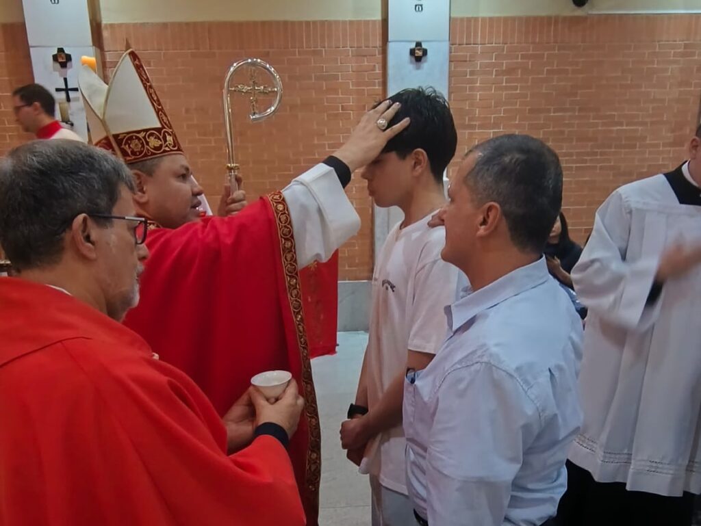 Na noite do sábado, 12, Dom Cícero Alves de França conferiu o sacramento da Confirmação a seis jovens e adultos durante missa na Paróquia Sagrada Família, Decanato São Lucas, concelebrada pelo Padre Adilson Pinheiro, Pároco. (por Fernando Arthur)