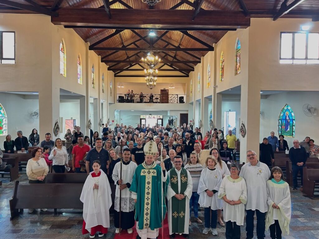 Na noite da quinta-feira, 10, Dom Cícero Alves de França presidiu missa na Paróquia São João Batista, no Carrão, Decanato São Lucas, por ocasião dos 55 anos da presença do Encontro de Casais com Cristo (ECC) na Região Belém. Concelebraram os Padres Adilson Pinheiro, Assessor Eclesiástico para o ECC na Região Belém; Irineu Dossou, SVD, Pároco da Paróquia São Marcos Evangelista; William Rosa, MPS, Vigário Paroquial da Paróquia Sagrada Face; e Jonatas Mariotto, Pároco da Paróquia Santa Adélia. (por Kaique Mazaia)