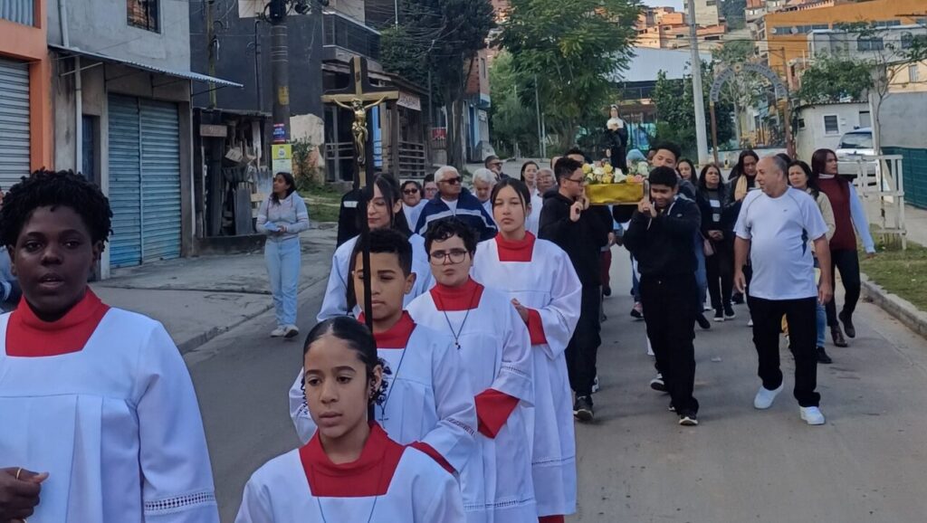 Na manhã do dia 9, os fiéis da Comunidade Santa Paulina, da Paróquia Nossa Senhora das Flores, Decanato Sant’Ana e São Joaquim, se reuniram para celebrar a padroeira, em missa presidida por Dom Cícero Alves de França e concelebrada pelo Padre Phillip Abaya, SVD, Vigário Paroquial. Na homilia, o Bispo Auxiliar da Arquidiocese na Região Belém ressaltou as virtudes de Santa Paulina. Antes da celebração, os fiéis realizaram uma procissão (foto) pelas ruas do bairro com a imagem da padroeira. (por Fernando Arthur)