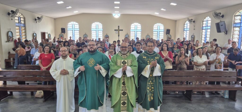 Na manhã do domingo, 21, a Paróquia Santa Dulce dos Pobres, Decanato São Matias, acolheu o Padre Salvador Rodea González, C.R., Prepósito Geral da Ordem dos Clérigos Regulares Teatinos, que presidiu a celebração eucarística, concelebrada pelos Padres Gustavo Corrêa, C.R., Vigário Paroquial, e Henrique Nunes, C.R., também da Congregação teatina. (por Marcelo Fagner)