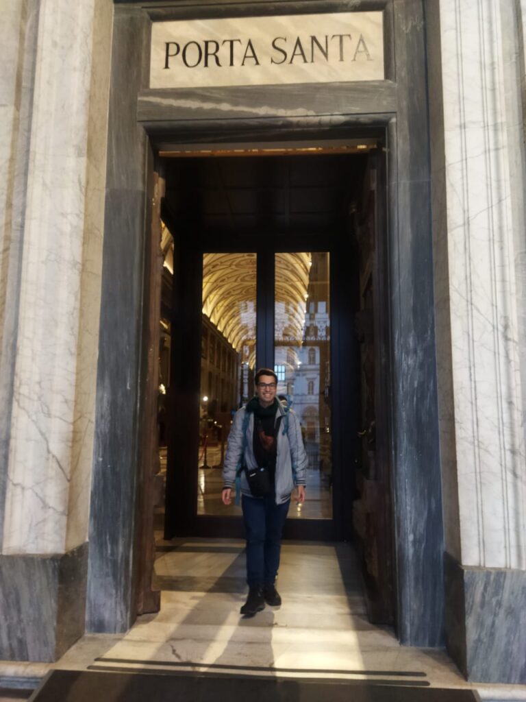 O jovem Sávio Campos de Souza, acólito e ministro extraordinário da Sagrada Comunhão da Comunidade São João Batista, no Jardim Rizzo, que pertence à Paróquia Santo Alberto Magno, Decanato São Bartolomeu, está em Roma para atuar como voluntário nas atividades do Jubileu 2025. (por Benigno Naveira)