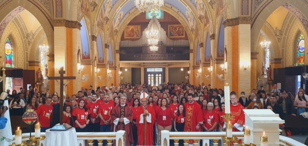 Em missa presidida por Dom Edilson de Souza Silva, no sábado, 30 de agosto, na Paróquia Nossa Senhora da Lapa, Decanato São Simão, 60 jovens e adultos receberam o sacramento da Confirmação. Concelebraram os Padres Marcos Roberto Pires, Pároco, e Leandro Rasera Adorno, da Diocese de Piracicaba (SP), com a assistência do Diácono Marcos Adriano de Souza. (por Marcio Silva)
