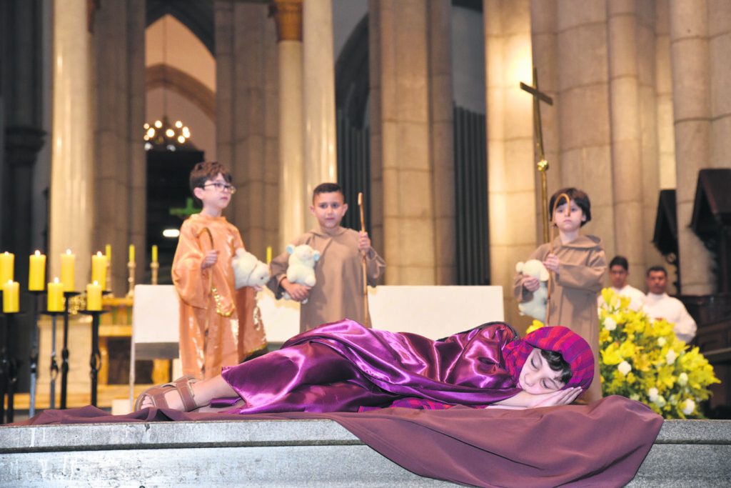 Durante a proclamação do Evangelho, aconteceu a encenação do nascimento de Cristo. Miguel Elias Silva, 8, representou São José. “Foi um momento especial de transmitir a mensagem do pai adotivo de Jesus”, disse.