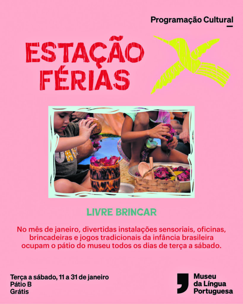 Jogos, apresentações artísticas e brincadeiras estão no roteiro da Estação de Férias no Museu da Língua Portuguesa, que prossegue até o dia 31 deste mês, de terça-feira a domingo, das 10h às 17h, no Pátio B.
