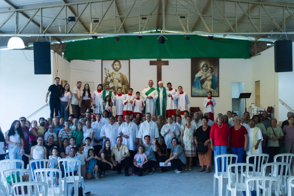 No sábado, 25, os fiéis da Paróquia São José Operário, Decanato São Filipe, peregrinaram ao Santuário Sião do Jaraguá por ocasião do Jubileu da Esperança. O momento foi ainda mais especial em razão da celebração dos 25 anos da Paróquia, a ser celebrado no próximo dia 23 de dezembro. A peregrinação paroquial foi encerrada com a missa presidida pelo Padre Tito Marega, SV – que na ocasião festejava seus 83 anos de vida –, e concelebrada pelo Padre Gilson Feliciano Ferreira, SV, Pároco, com a assistência do Diácono Edson Chagas. (por Keli Ferreira dos Santos Silva)