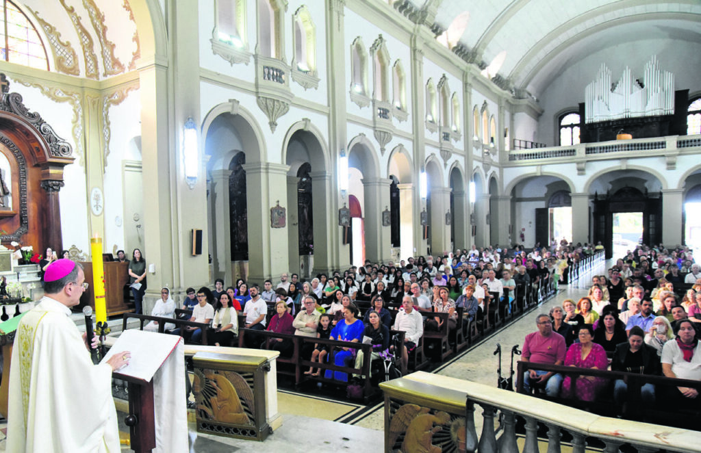 Dom Carlos Lema Garcia, Bispo Auxiliar da Arquidiocese e Vigário Episcopal para a Educação e a Universidade, presidiu a missa no templo que é uma das igrejas de peregrinação da Arquidiocese no Jubileu 2025. Concelebrou o Padre Valman Fernandes, CSC, que atua no Colégio Santa Cruz.