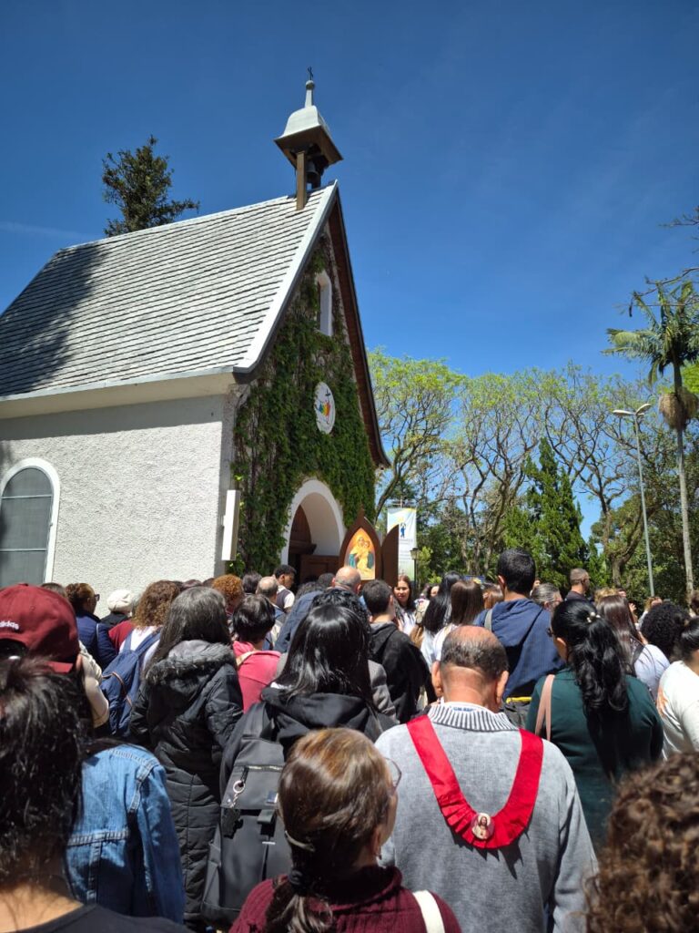 No sábado, 27 de setembro, centenas de fiéis das paróquias e comunidades da Região Belém participaram da peregrinação ao Santuário da Mãe e Rainha Três Vezes Admirável de Schoenstatt, em Atibaia (SP). Na Romaria Anual Regional, os zeladores da Mãe Peregrina puderam ter momentos de oração e espiritualidade na capela da Mãe e Rainha. Os fiéis realizaram uma procissão com as capelinhas, além de recitarem o Terço. O Padre Lauro Wisnieski, Decano do Decanato São Lucas e Assessor Eclesiástico Regional para a Pastoral da Mãe Peregrina, presidiu a missa. Ao final, os fiéis consagraram-se a Nossa Senhora. (por Kaique Mazaia)
