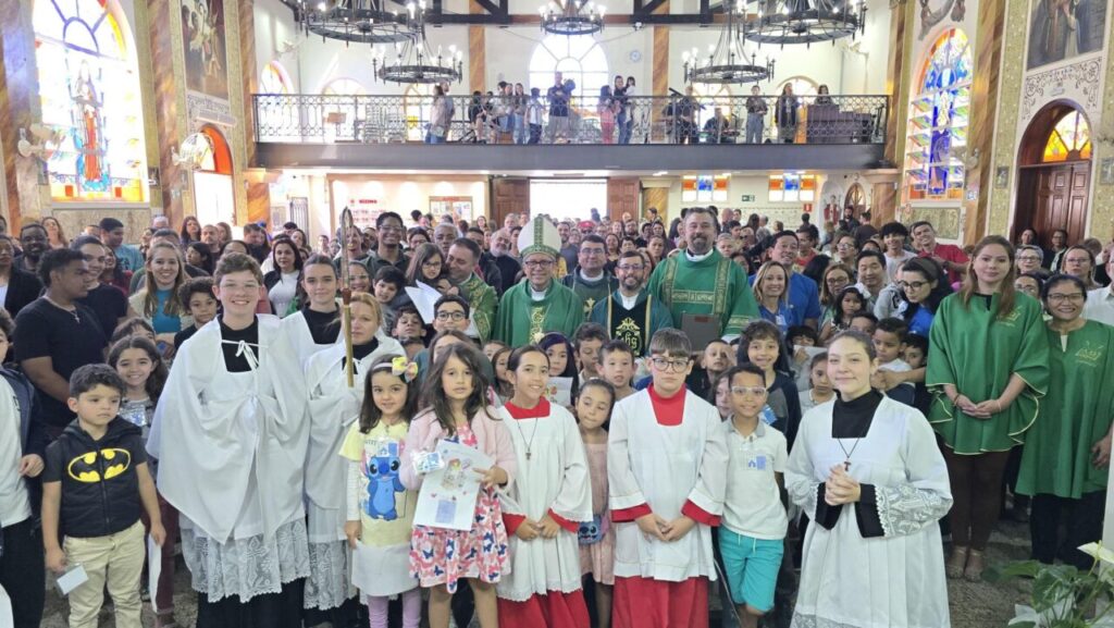 Dom Edilson de Souza Silva, Bispo Auxiliar da Arquidiocese na Região Lapa, deu posse ao Padre Yago Barbosa Ferreira como Pároco da Paróquia Nossa Senhora da Imaculada Conceição Aparecida, no Jardim Ester, Decanato São Bartolomeu, em 29 de julho. Entre os concelebrantes esteve o Padre João Carlos Deschamps de Almeida, Vigário-Geral Adjunto da Região Lapa. (por Benigno Naveira)