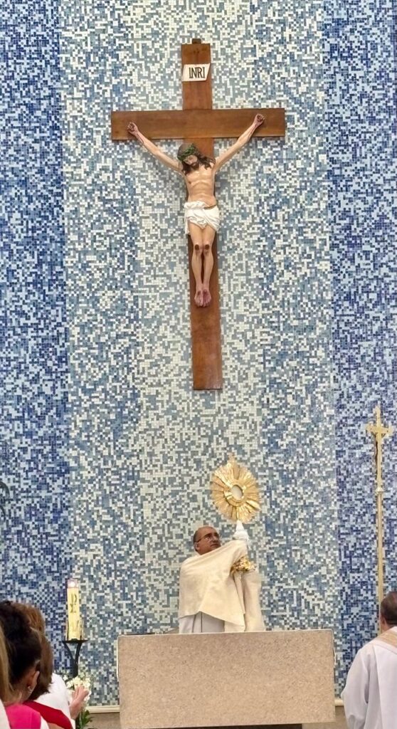 Na quinta-feira, 19, Solenidade de Corpus Christi, na Paróquia do Santíssimo Sacramento, Decanato São Tiago de Alfeu, houve a procissão com o Santíssimo e missa presidida por Dom Rogério Augusto das Neves, Bispo Auxiliar da Arquidiocese na Região Sé, e concelebrada pelo Cônego Aparecido Silva, Pároco, e padres colaboradores. No lado externo da igreja, foi montado, pelos membros do Encontro de Jovens com Cristo, o tapete de Corpus Christi. (por Pascom paroquial)