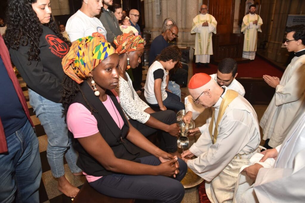Após a homilia, Dom Odilo realizou o rito do lava-pés. Tiveram os pés lavados os representantes de pastorais e organismos da Arquidiocese ligados à fraternidade e ação social, bem como os atendidos por estas iniciativas:
