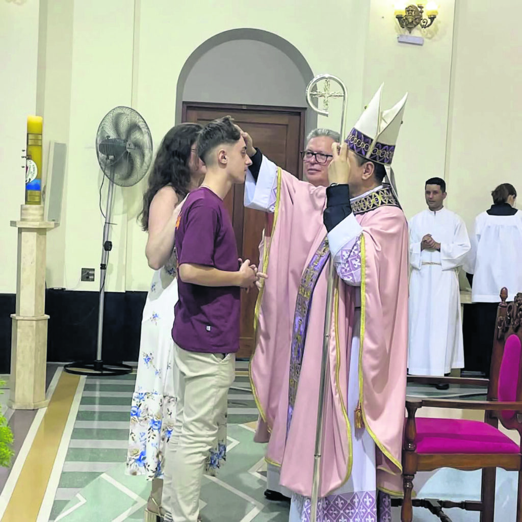 Dom Cícero Alves de França presidiu missa na Paróquia Nossa Senhora das Graças, na Vila Antonieta, Decanato São Timóteo, na tarde do domingo, 14, durante a qual conferiu o sacramento da Confirmação a 27 jovens e adultos. Concelebrou o Padre Eli Marcel de Abreu, SdC, Administrador Paroquial. (por Kaique Mazaia)