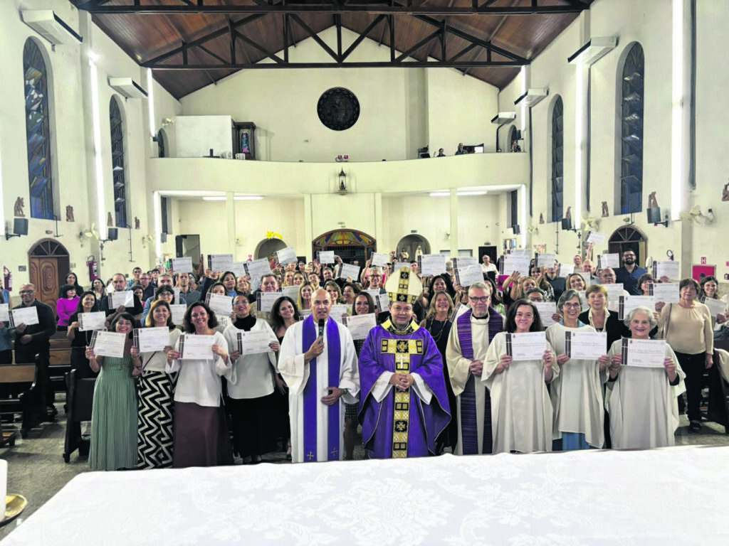 No dia 9, Dom Cícero Alves de França presidiu missa na Paróquia Santo Antônio de Lisboa, Decanato São Lucas, por ocasião da formatura de 57 alunos do Curso de Teologia para Leigos da Região Belém. Concelebrou o Cônego Marcelo Monge, Pároco, e o Padre Cristian Uptmoor, Vigário Paroquial. (por Dênis Medeiros)