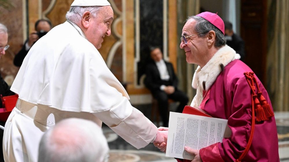 “Queridas irmãs, queridos irmãos, a Igreja lhes confia uma tarefa de grande responsabilidade, mas antes ainda de grande beleza: ajudar a purificar e restaurar as relações interpessoais. O contexto jubilar em que nos encontramos enche de esperança este trabalho, de esperança que não decepciona. Invoco sobre todos vocês, peregrinos de esperança, a graça de uma alegre conversão e a luz para acompanhar os fiéis rumo a Cristo, que é o Juiz manso e misericordioso.”