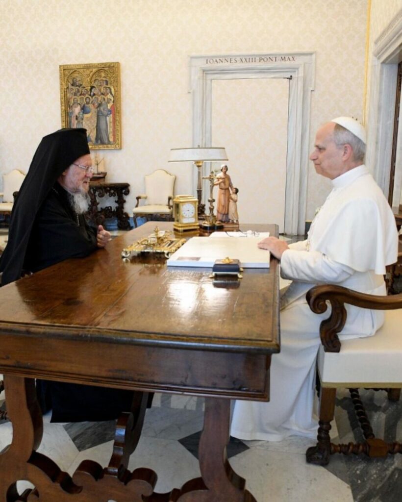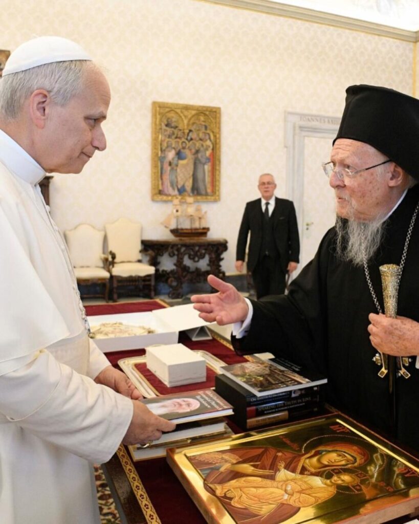 Na manhã desta segunda-feira, 19 de maio, audiência com Leão XIV para o primeiro diálogo reservado, troca de presentes, promessa de um compromisso comum pela paz e pelo meio ambiente e desejo de se reencontrarem em Nicéia para os 1700 anos do Concílio.